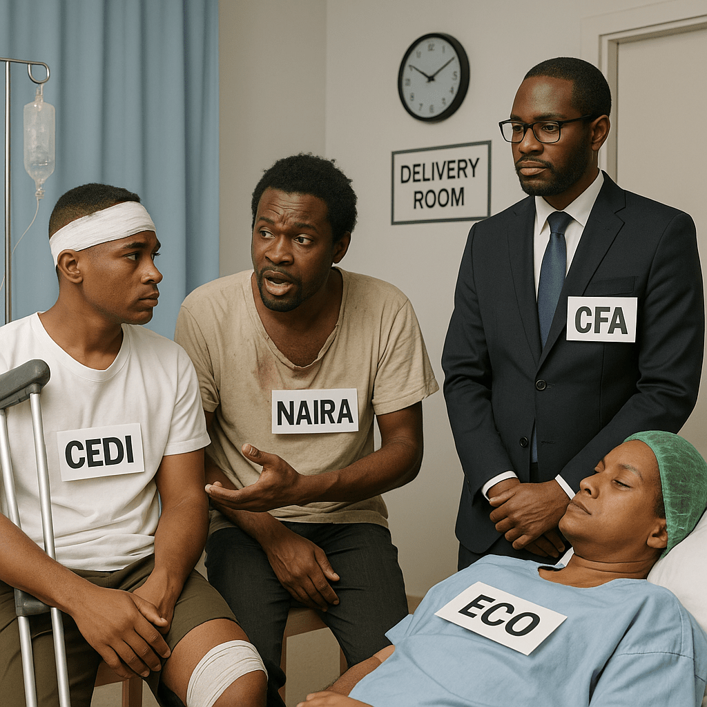 Yet beneath the failures lies an important lesson. Even in his weakness, the Cedi remains envied by Naira, because Ghana’s smaller economy still manages occasional stability that Nigeria, with all its oil, cannot achieve. CFA, though stable, secretly envies Cedi and Naira, for at least they are free to stumble on their own terms. And Eco, unborn, envies them all, because at least they exist.